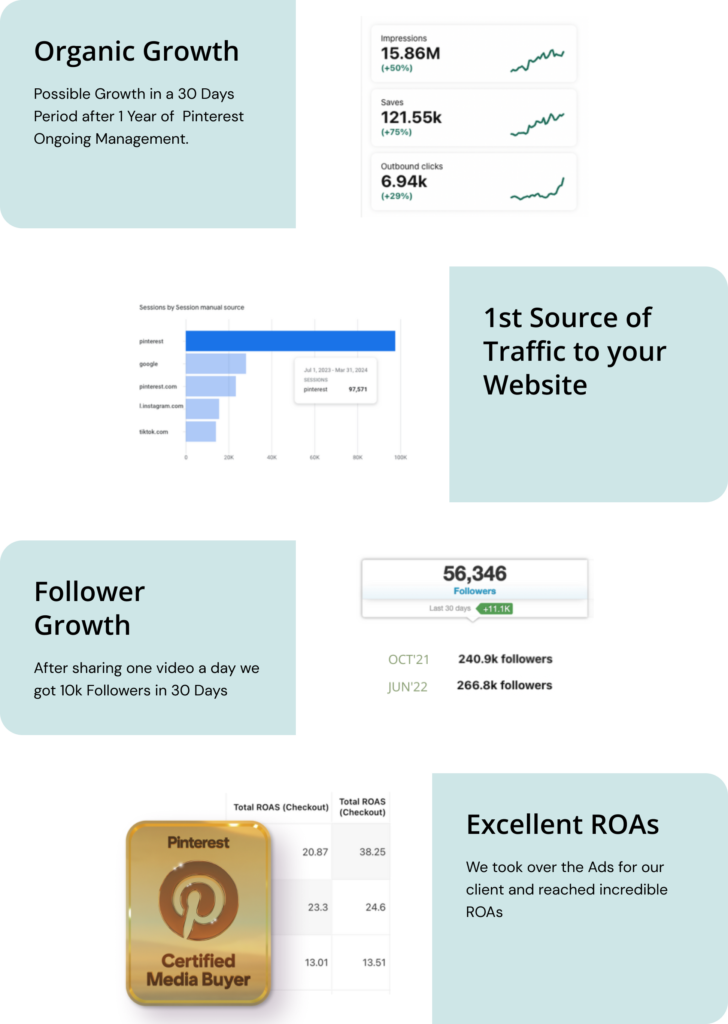 Tomamos el control total de tu Pinterest, así vos podés concentrarte en hacer crecer tu marca.