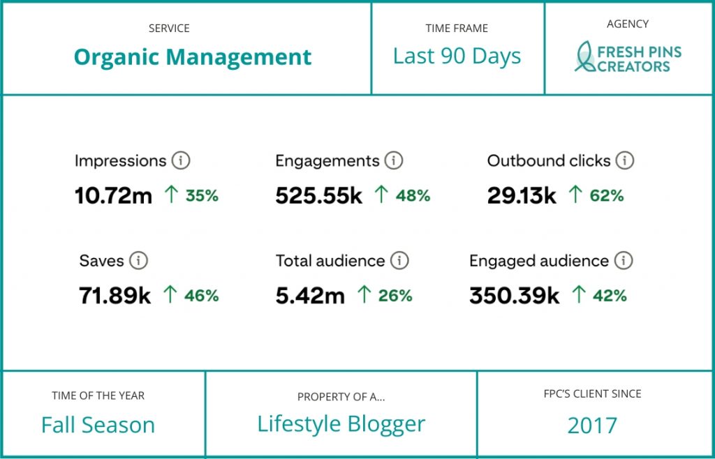 With her help through the past several years, I have had multiple pins go viral, grown my following significantly as well as my impressions which see up to +10 milioni di visite al mese.